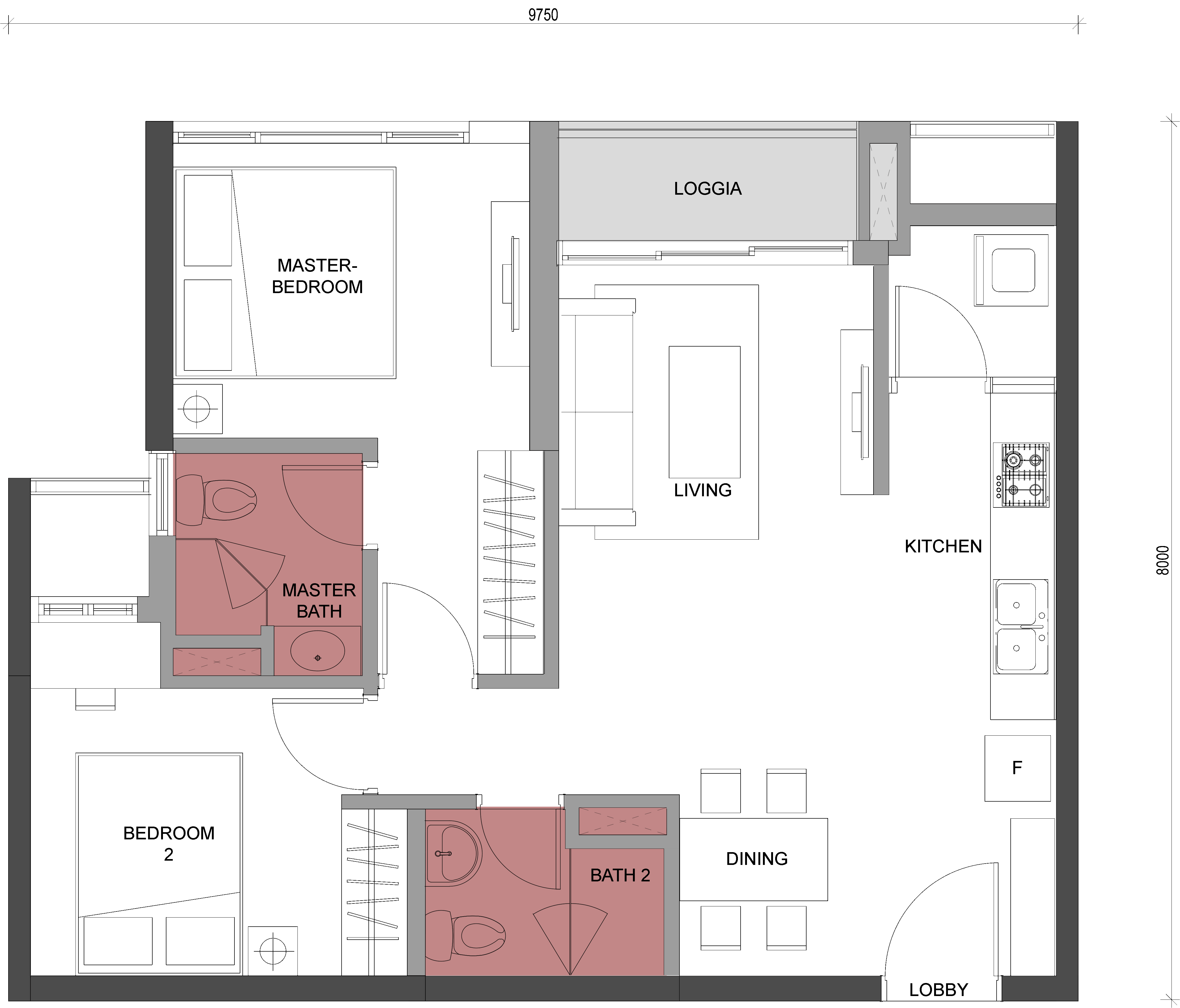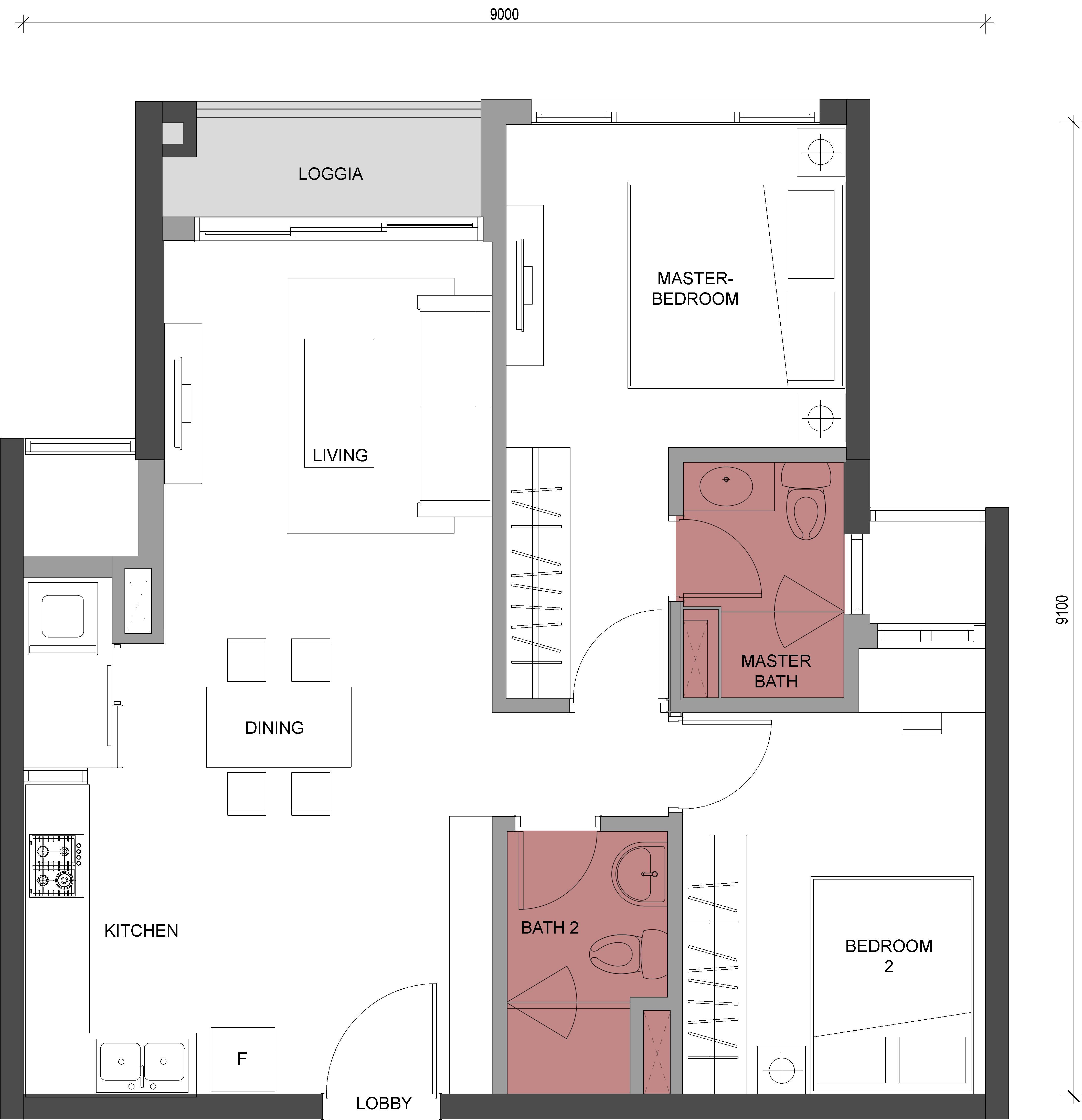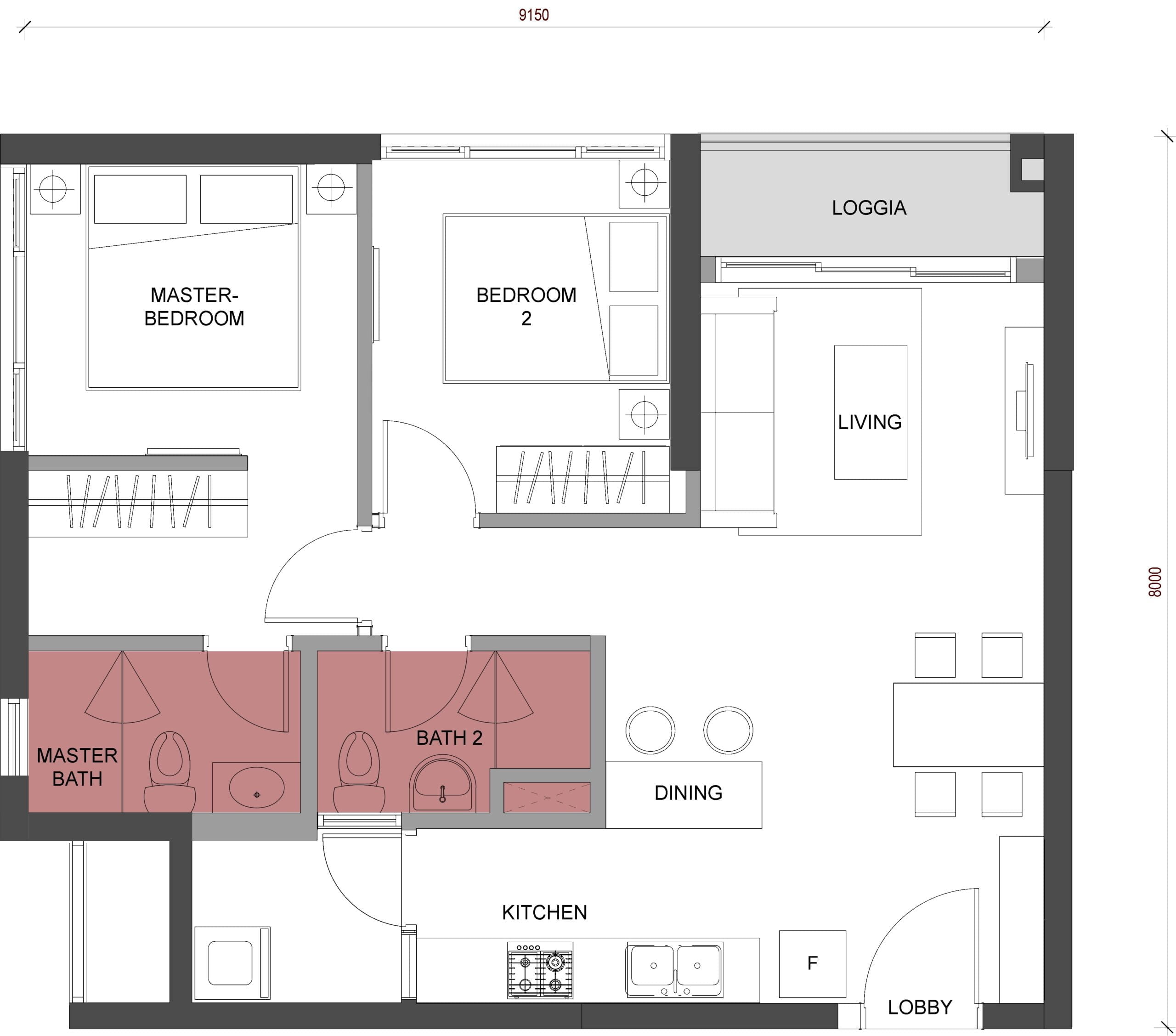 - Diện tích căn hộ: từ 41 – 136 m²